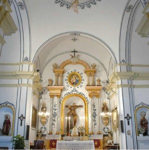 El edificio consta de un sólo cuerpo en forma de cruz latina y sacristía, con ausencia de cúpula sobre crucero, como era habitual en las iglesias franciscanas. En su interior el altar mayor recogía, hasta antes de la guerra, la imagen del Cristo de la Columna o de “la Cañica”, remarcado por un retablo pictórico con arquitectura fingida que cerraba el presbiterio de creación barroca del siglo XVIII, y en sus paredes colgaba la cruz que portaba una de sus más sobresalientes devotas, Juana Ángela Godoy García, conocida popularmente como “Beata Godoya” y difusora de la costumbre, desde entonces mantenida del rezo del Vía Crucis todos los días de Cuaresma. Además, en la Sacristía todavía se conservan, en un arcón, los utensilios de cuerda, corona y columna necesarios para la representación de “la Corona Mortificada”, antigua representación religiosa – popular, origen también de las representaciones de La Pasión, declaradas de Interés Turístico.
