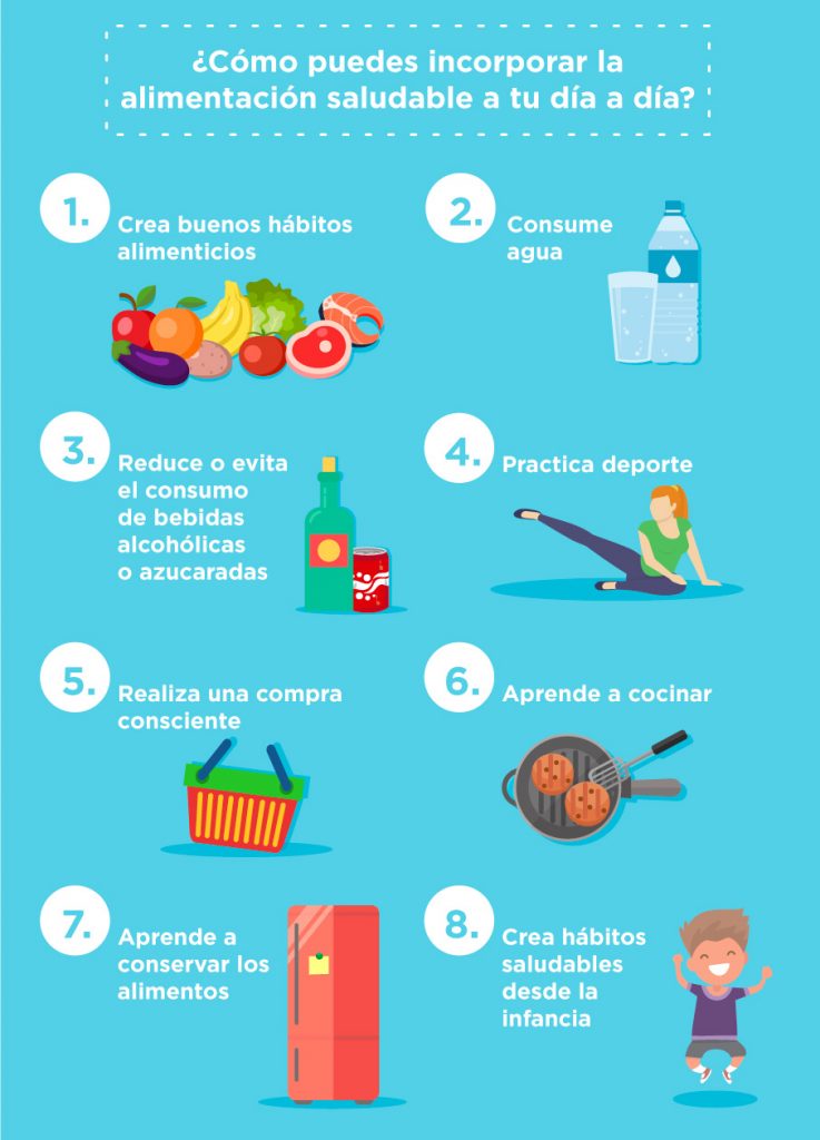 Cuece y cocina al vapor, al horno o a la plancha y evita en lo posible las frituras y las salsas. No abuses de alimentos precocinados. - 9. Realizar actividad física mínimo 30 minutos, tres veces por semana