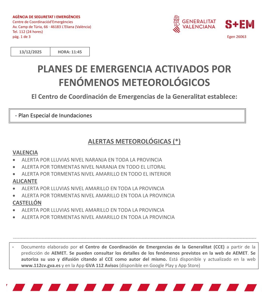 📱 Sigue la información únicamente a través de canales oficiales (GVA, AEMET, 112).