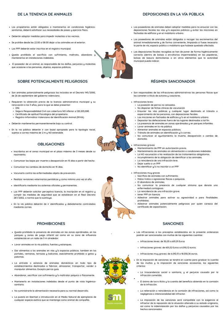 La edil de Sanidad, Inmaculada Cascales ha insistido en que “es muy importante que los ciudadanos cumplamos con nuestras obligaciones cívicas con los animales y cuando salgamos a la calle vayamos previstos de agua con jabón para limpiar los orines y con bolsas para recoger los excrementos. En el folleto se recogen las obligaciones de los propietarios y también las sanciones económicas a las que se pueden enfrentar si son requeridos por la Policía Local”.