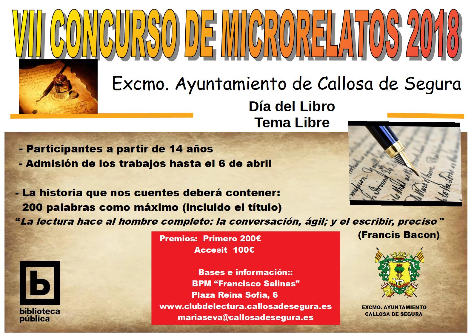 El Excmo. Ayuntamiento de Callosa de Segura convoca el VIII concurso de microrrelatos 2019, que como cada año se convoca con motivo del “Día del Libro”. En esta octava edición … Leer más