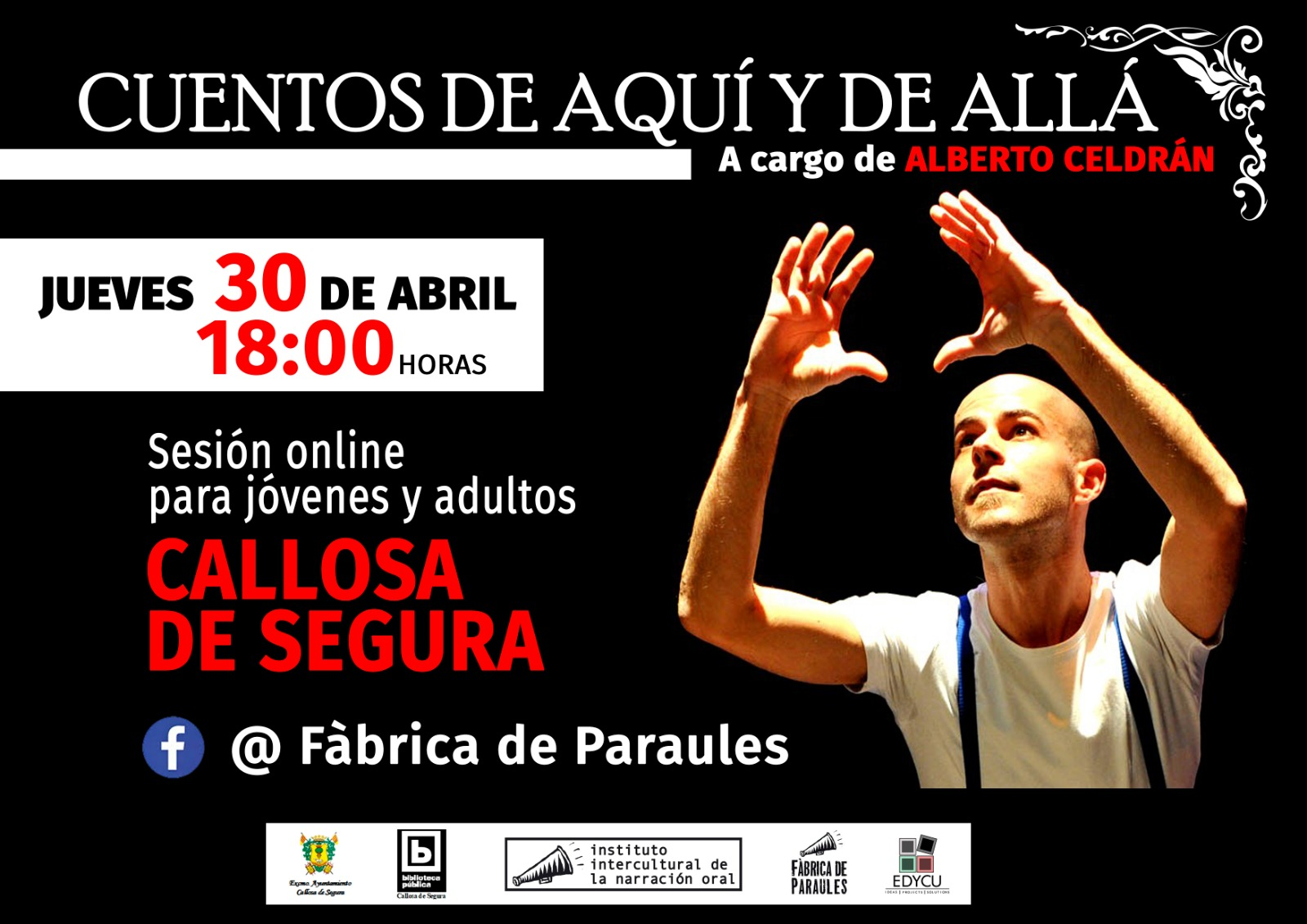 Jueves 30 de abril, a las 18 h, cuentos para jóvenes y adultos, on line, con Alberto Celdrán