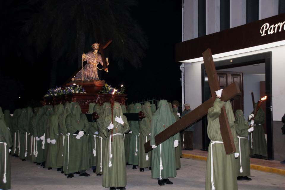 La cofradía de Nuestro Padre Jesús, parte de la Capilla de San Francisco y sube por la calle Vía Crucis hasta el Calvario, donde tiene lugar una lectura dramatizada del Santo Evangelio.