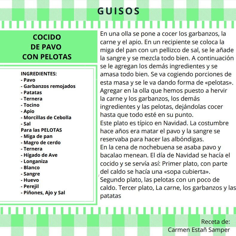 Recetario amas de casa-Guisos-Cocido de pavo con pelotas