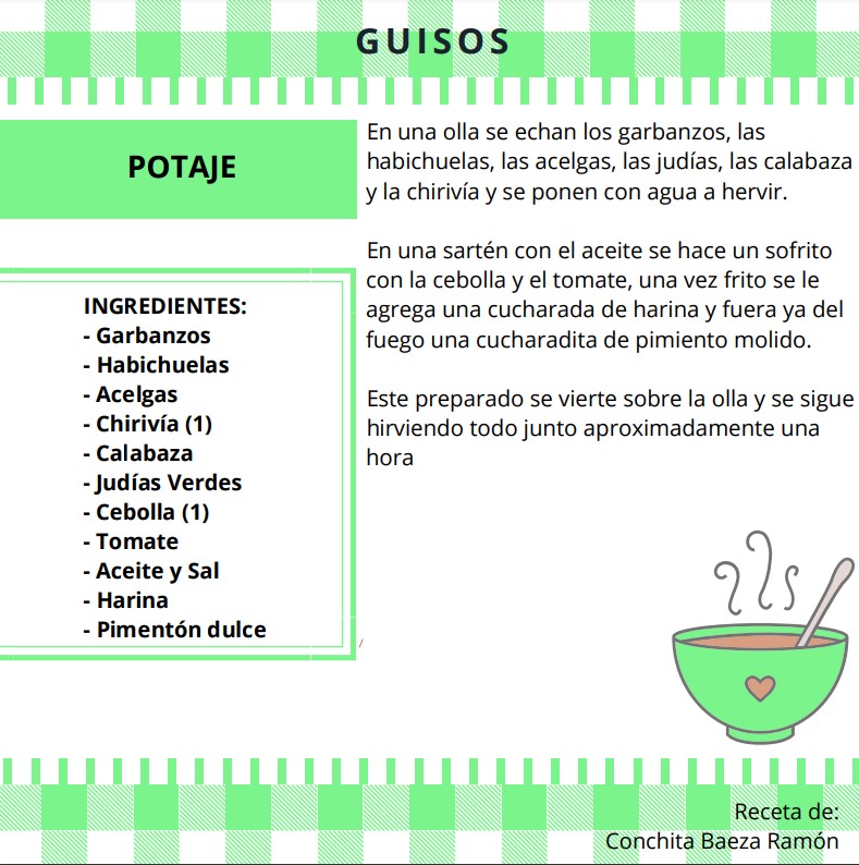 fuego una cucharadita de pimiento molido. Este preparado se vierte sobre la olla y se sigue hirviendo todo junto aproximadamente una hora.