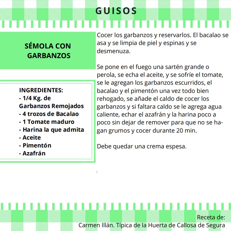 Recetario amas de casa-Guisos-Semola con garbanzos