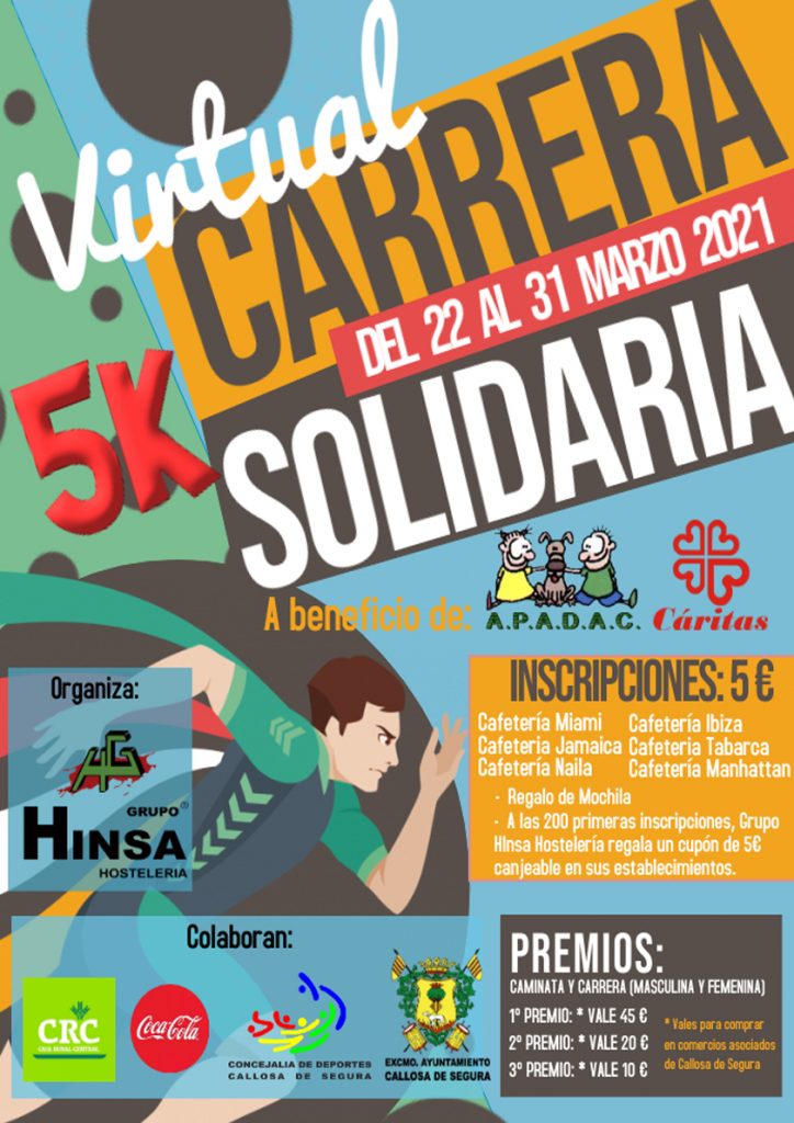 Hostelería Grupo Hinsa en colaboración con la Concejalía de Deportes del Excmo. Ayuntamiento de Callosa de Segura ha organizado una Carrera Virtual Solidaria, a beneficio de Cáritas y APADAC.