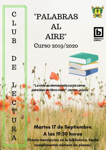 4.- El Club de Lectura de nuestra Biblioteca “Palabras al aire” mantiene su actividad en estos días de forma diferente, con el formato: “Quédate en casa… leyendo”.