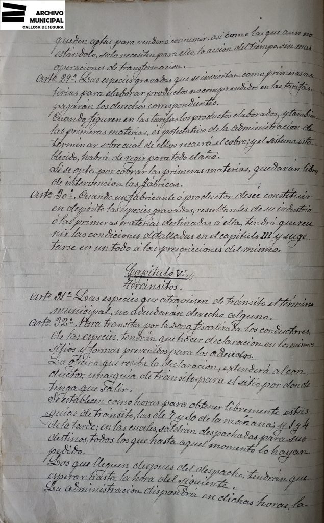 El documento forma parte del Expediente de “Ordenanzas Municipales de arbitrios 1923-1938” y está compuesto por 8 hojas escritas a mano por ambas caras y cosidas entre ellas; con escritura legible y en buen estado de conservación.
