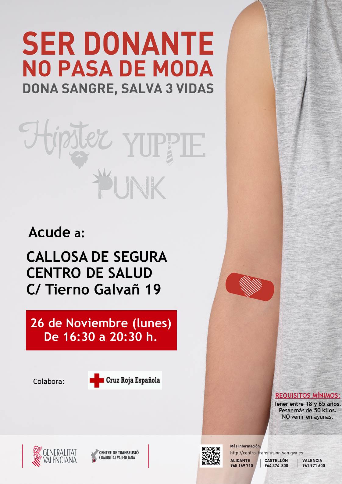 El próximo lunes 26 de noviembre, a las 16:30 horas en el centro de salud de nuestro municipio, continúa la jornada de donación de sangre.