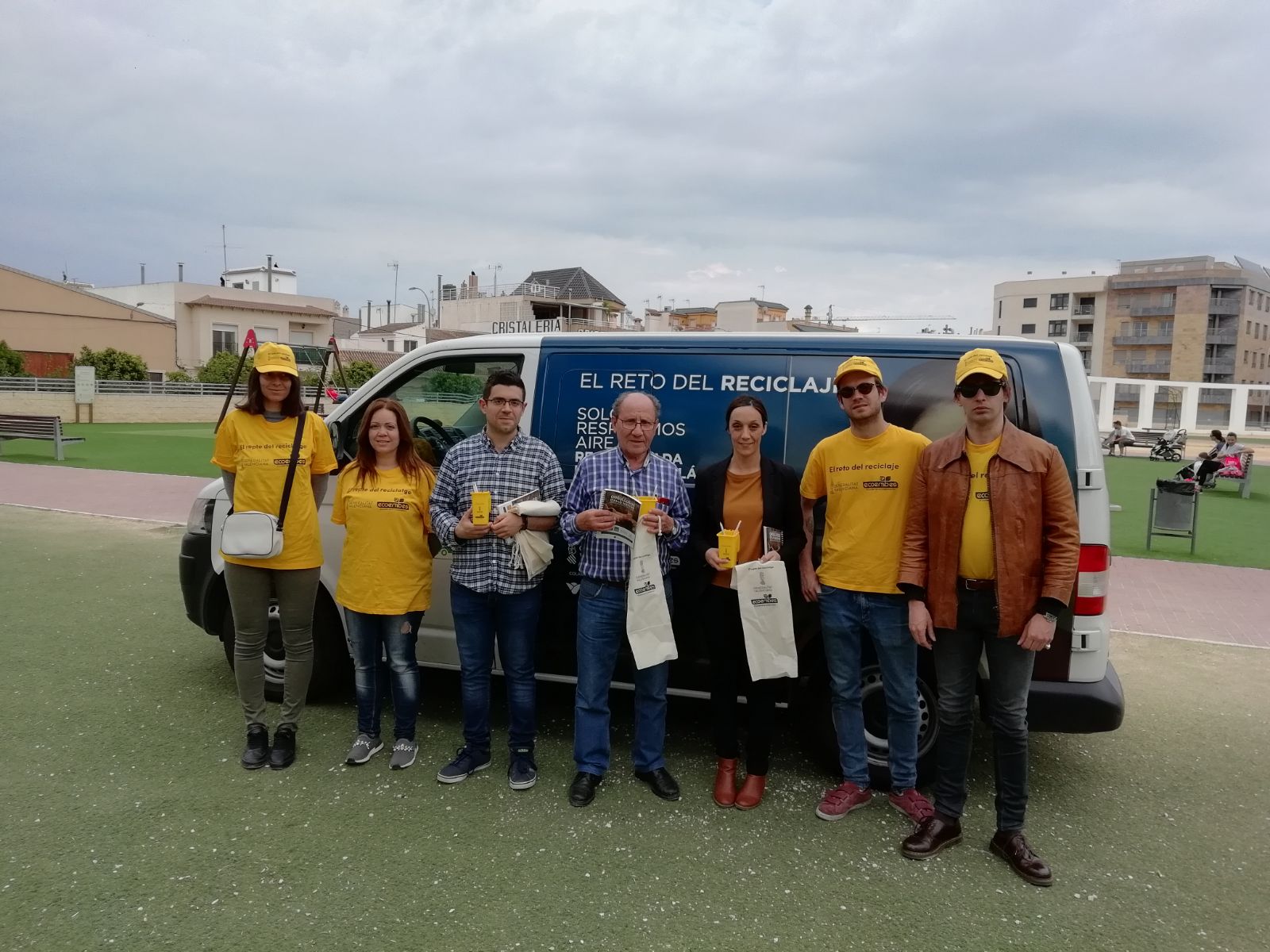 El concejal de servicios, Rubén Manresa, el concejal de medio ambiente, Antonio Berná y la concejala de educación, Ángela Pedrera fueron las encargados de recibir a la furgoneta del reciclaje que estará en esta localidad y hasta el próximo 10 de mayo.