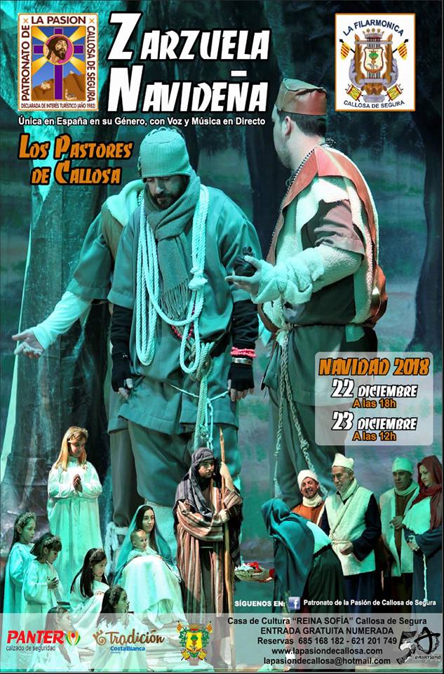 La zarzuela de Navidad en verso, que se representó por primera vez en Madrid en el año 1914 y en Callosa de Segura en el año 1928 y desde entonces se ha venido representando en diversas épocas, ahora vuelve a nuestra ciudad los días 22 y 23 de diciembre a las 18:00 horas y a las 12:00 horas, respectivamente.