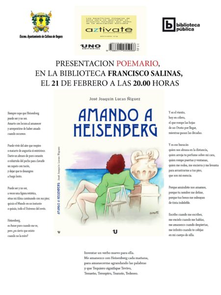 José Joaquín Lucas vuelve a publicar, pero esta vez lo hace con un libro de poemas, y de amor, titulado: Amando a Heisenberg, publicado por Uno Editorial. Su autor, al igual que en anteriores ocasiones ha querido que los beneficios íntegros de esta obra vayan a parar a una ONG, en este caso será para el Proyecto Turkana, por medio de la Asociación Aztivate.