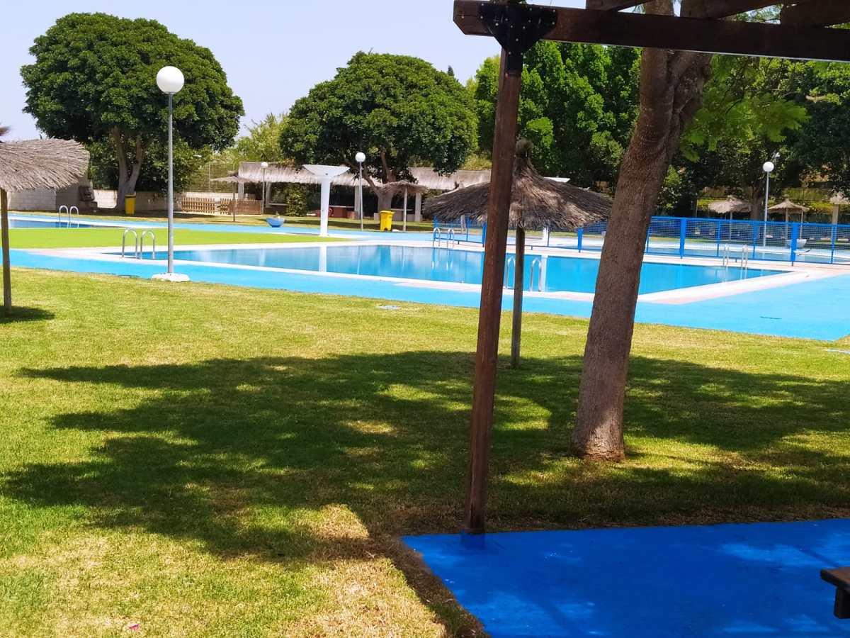 Consta de tres piscinas para usuarios de todas las edades, un amplio espacio destinado a terraza, zona de aparcamientos, vestuarios, bar – cafetería, amplia extensión de césped, sombrillas y arbolado.