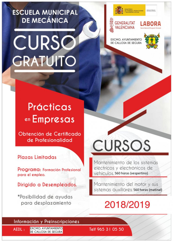SERVEF oferta en la escuela municipal de mecánica dos cursos gratuitos dentro del programa Formación Profesional para el empleo