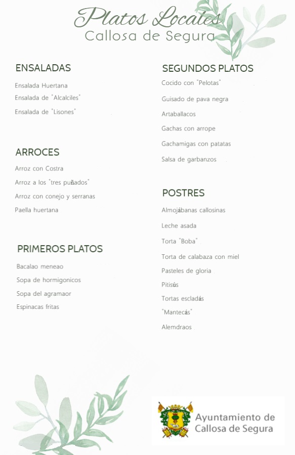 Uno de los recursos importantes de nuestra oferta turística es, sin duda, la gastronomía. La riqueza gastronómica de Callosa de Segura es tan variada como lo son sus paisajes y productos. Es típicamente mediterránea, con recetas de antaño y costumbres alimenticias que han permanecido inalterables durante siglos; recetas donde se funden la cocina tradicional y la moderna. En definitiva, deliciosos platos que encontramos en cada uno de los bares y restaurantes de la localidad.