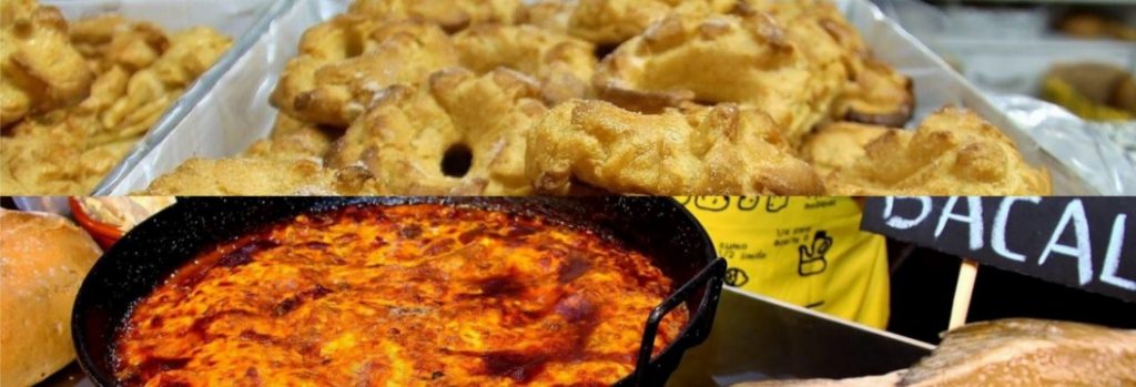 - La Candelaria y Cuarenta Horas: Arroz con costra de conejo. Almojábanas de postre.